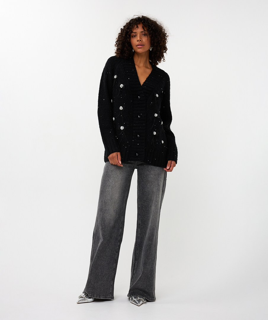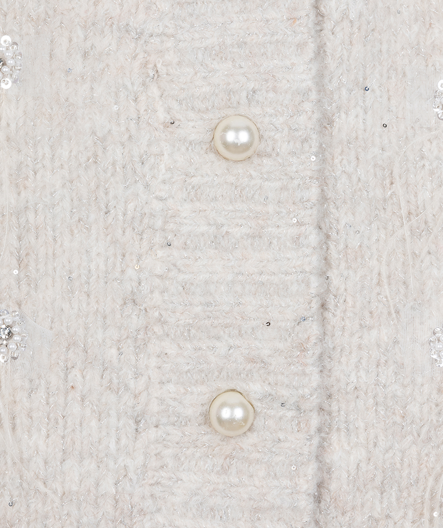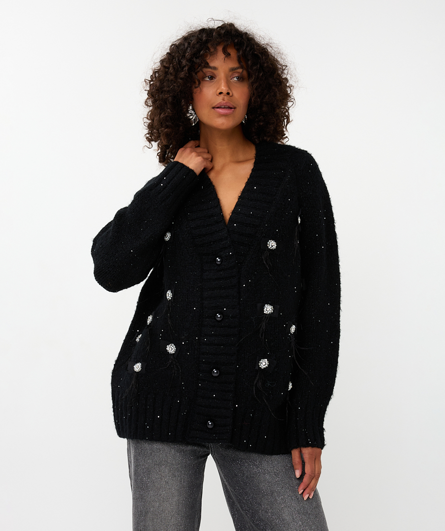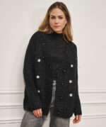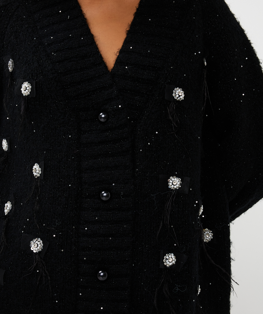 Μια μοναδικη ζακετα με κομψά κουμπιά από πέρλες και όμορφες λεπτομέρειες με πέρλες, φτερα και στρας. Μια κομψή προσθήκη στην χειμερινή σας γκαρνταρόμπα!