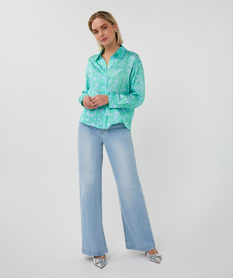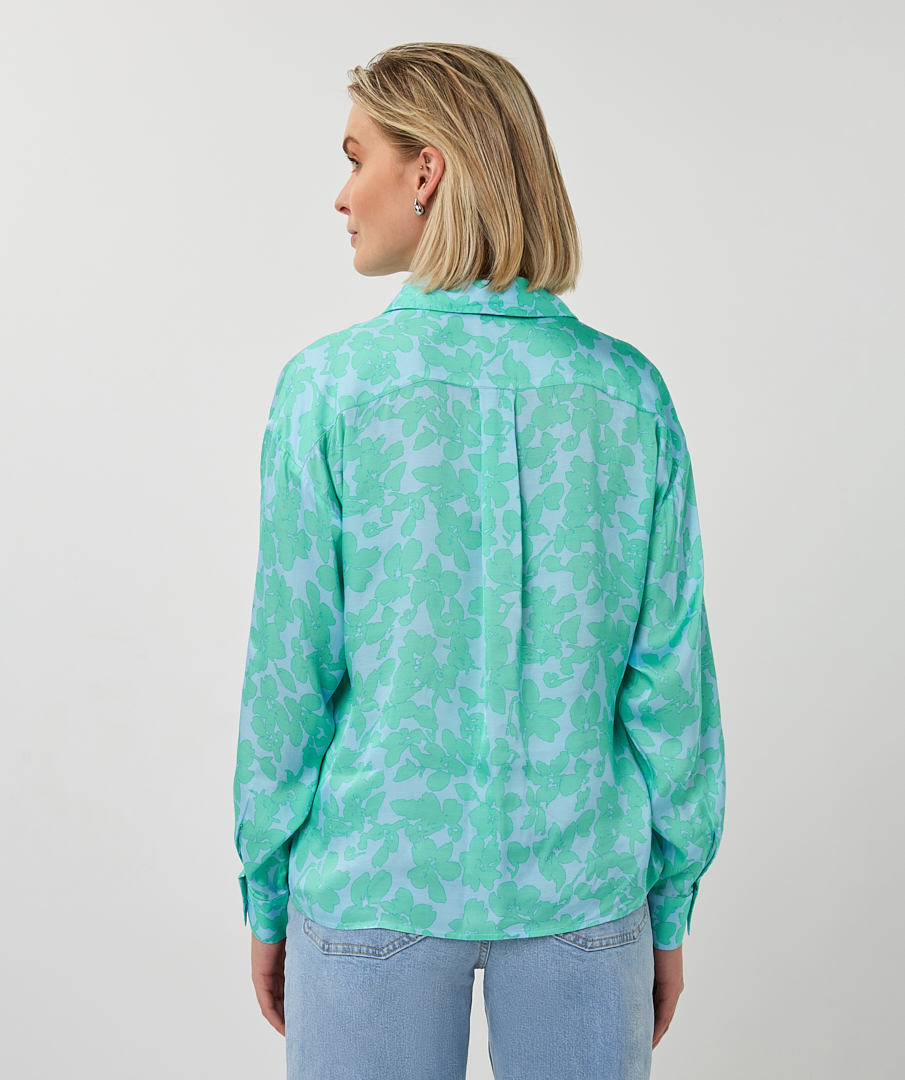Το πουκαμισο Esqualo με γιακα και μακρυα μανικια κλεινει με κουμπια και ειναι σε φαρδυα ανετη γραμμη. Εχει υπεροχο floral σε γαλαζιο με μεντα και ειναι κατασκευασμενο απο υψηλης ποιοτητας υλικα με συνθεση 55% viscose και 45% rayon. Συνδυαζεται υπεροχα με jeans και μονοχρωμα παντελονια.