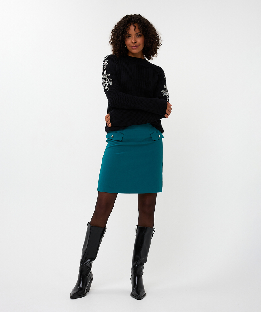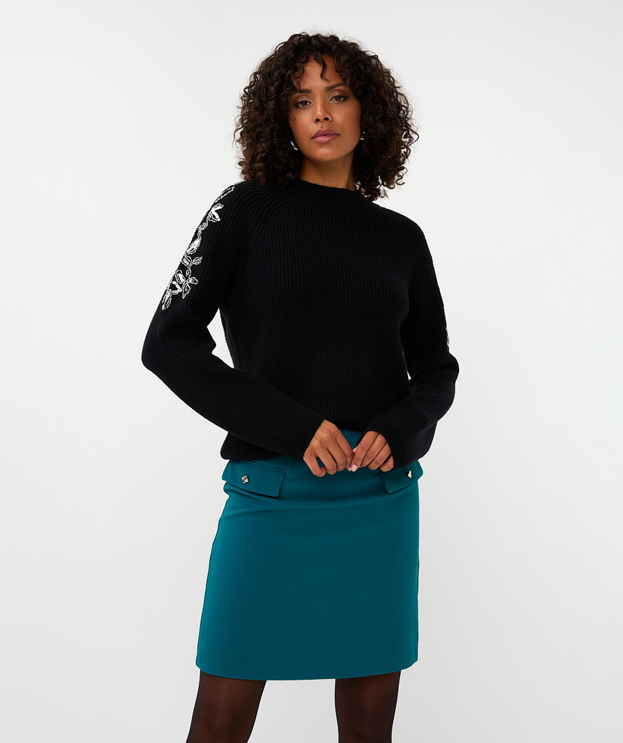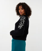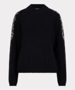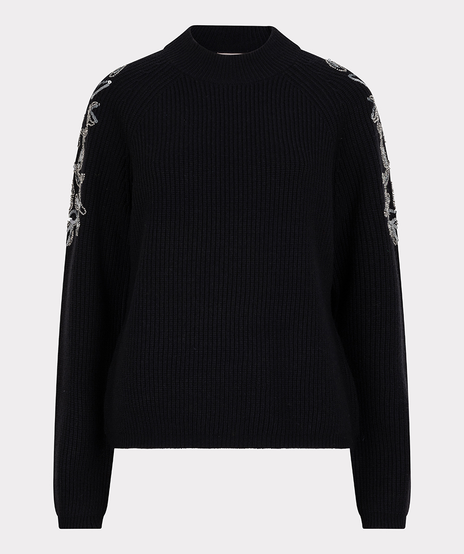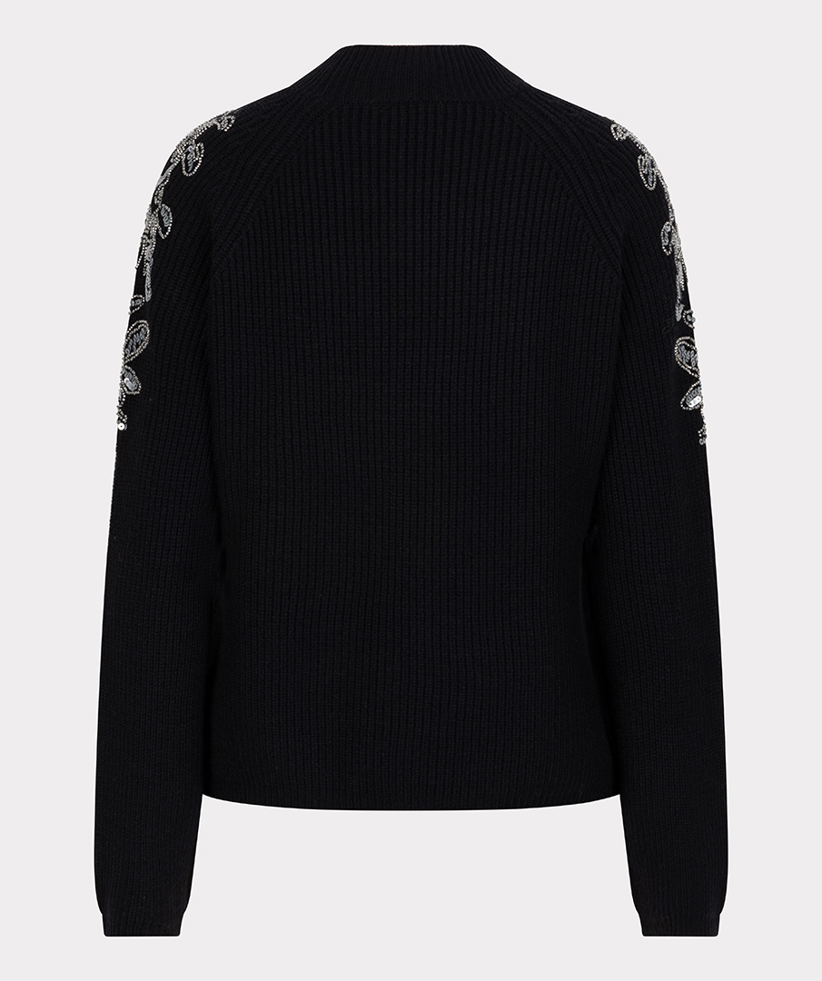 Ζεστό πλεκτό πουλόβερ με όμορφη λεπτομέρεια με παγιέτες και στους δύο ώμους. Το πουλόβερ είναι κατασκευασμένο από 50% βισκόζη, 28% πολυεστέρα και 22% νάιλον και προερχεται απο την Ολλανδια. Υπαρχει σε Off white και μαυρο και τα δυο με ασημι παγιετες.