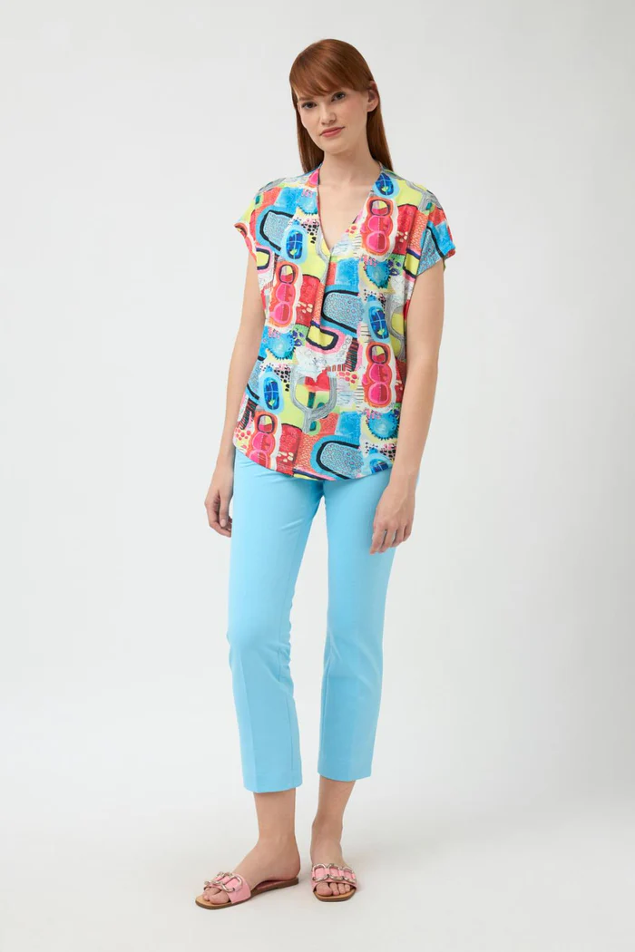Η κοντομανικη μπλουζα Tinta με V neck ειναι σε ανετη γραμμη δροσερη και απαλη. Ειναι κατασκευασμενη απο υψηλης ποιοτητας υλικα με συνθεση 95% poly και 5% elastane και προερχεται απο την Ισπανια.