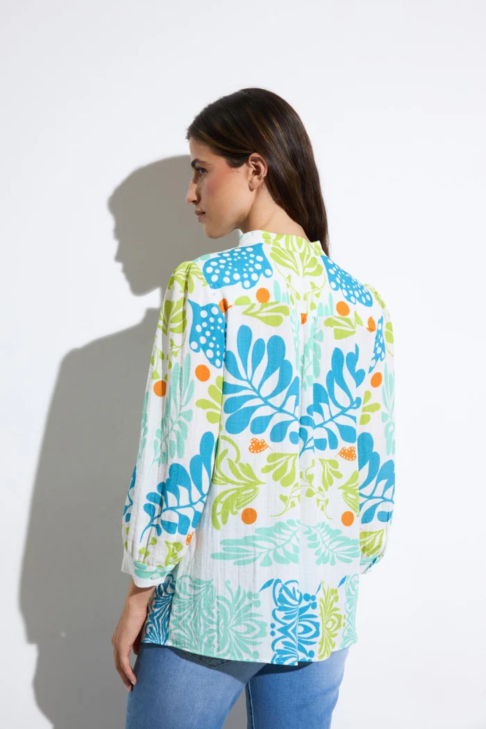 Η πουκαμισα Neila με V neck ειναι σε ανετη γραμμη με μακρια και ελαφρως φουσκωτα μανικια. Ειναι λευκη με τυπωμα σε υπεροχα χρωματα και ειναι κατασκευασμενη απο υψηλης ποιοτητας υλικα με συνθεση 80% viscose και 20% poly.